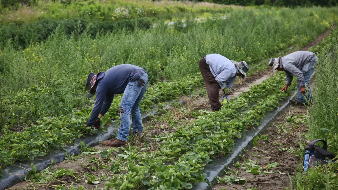 Migrant workers remove weeds surrounding strawberries plants at a farm in Markham, Ontario, in 2023. Creative Touch Imaging Ltd./NurPhoto via Getty Images. Source: CNN World.