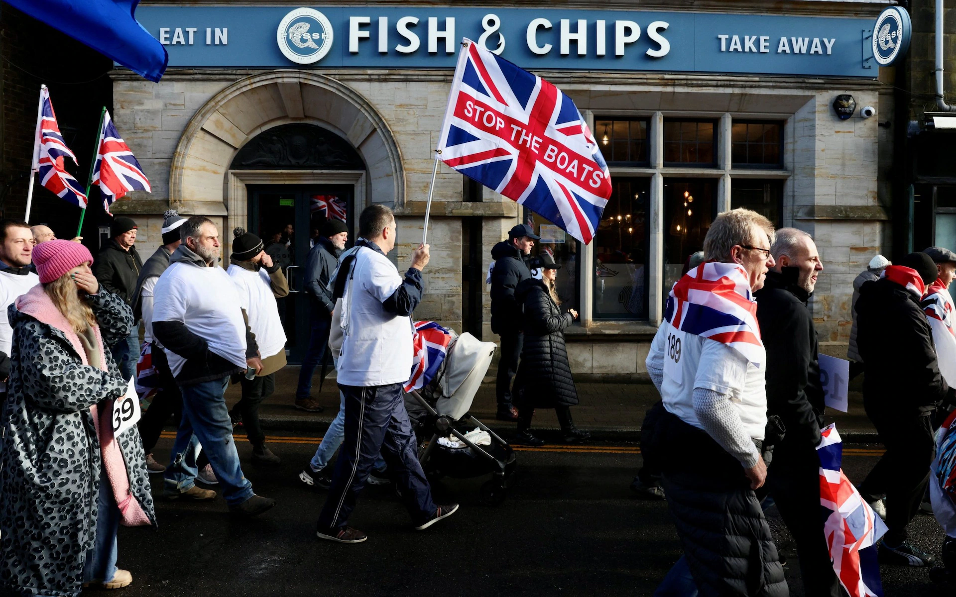 Sunday’s protest against asylum seekers being housed at an Army training camp near Crowborough Credit: Kevin Coombs/Reuters. Source: The Telegraph.