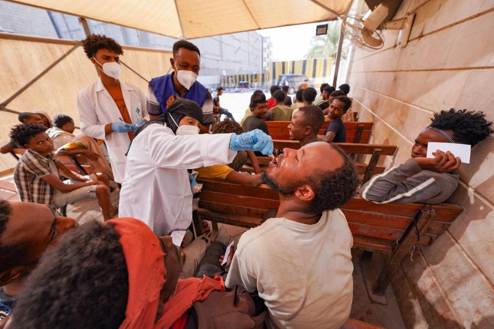 At IOM’s Migrant Response Point in Aden, migrants are receiving the cholera vaccine as part of a nationwide effort to tackle the outbreak. Photo: IOM/Majed Mohammed.
