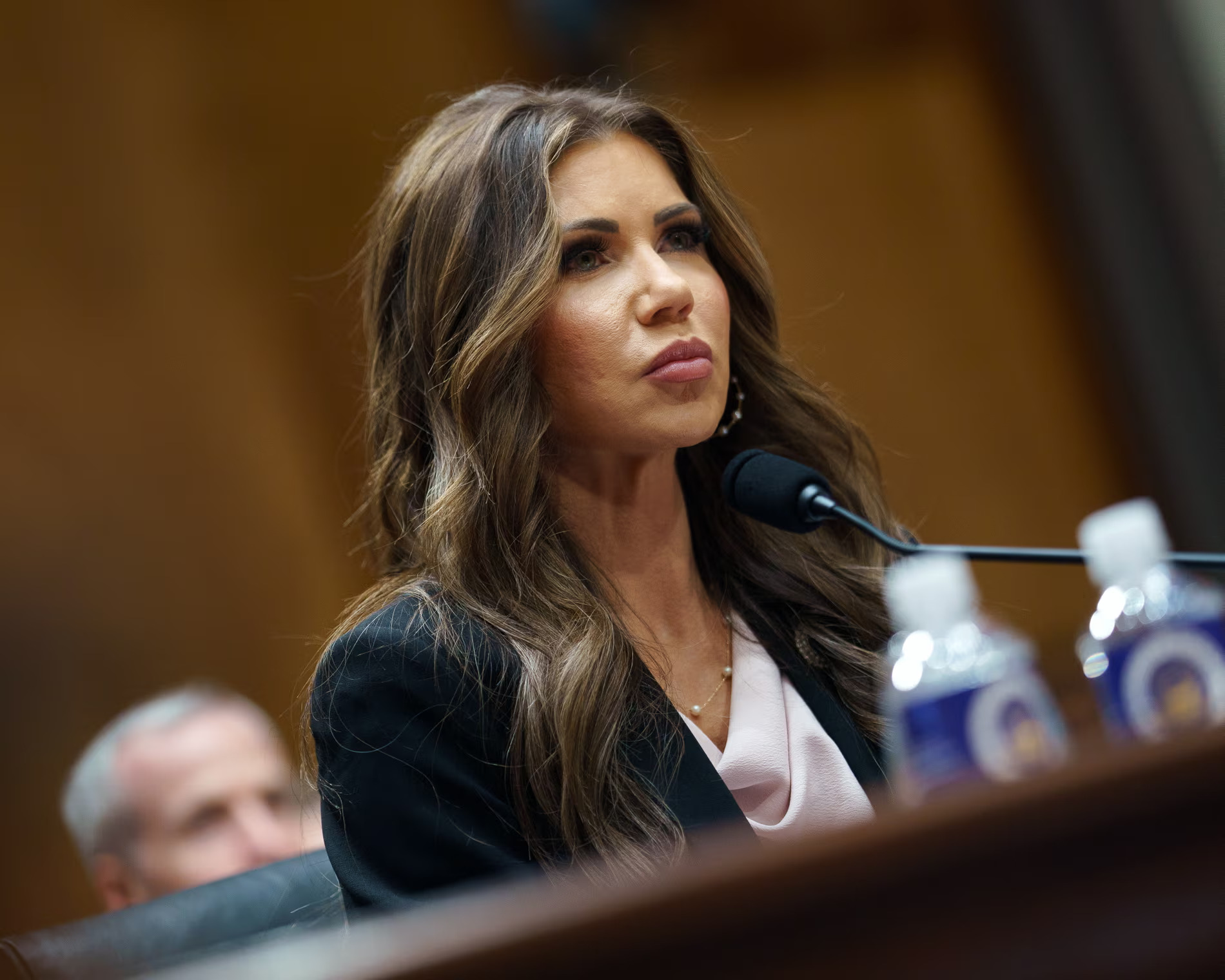 Kristi Noem, the homeland security chief, at a Senate committee hearing on Monday. Photograph: Will Oliver/EPA. Source: The Guardian.