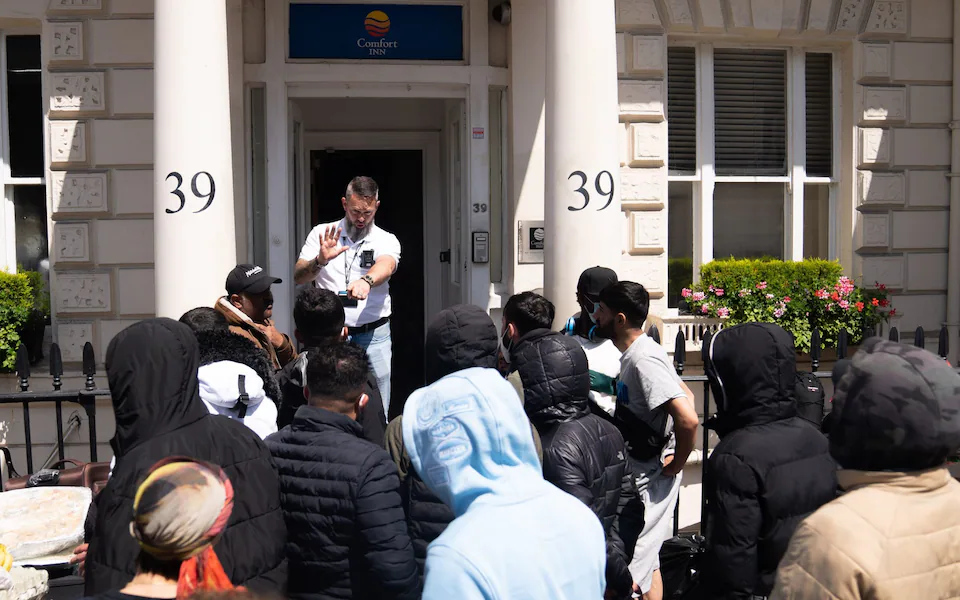 Asylum seekers are invited into the Comfort Inn hotel on Belgrave Road in Pimlico, central London Credit: James Manning/PA Wire. Source: The Telegraph.