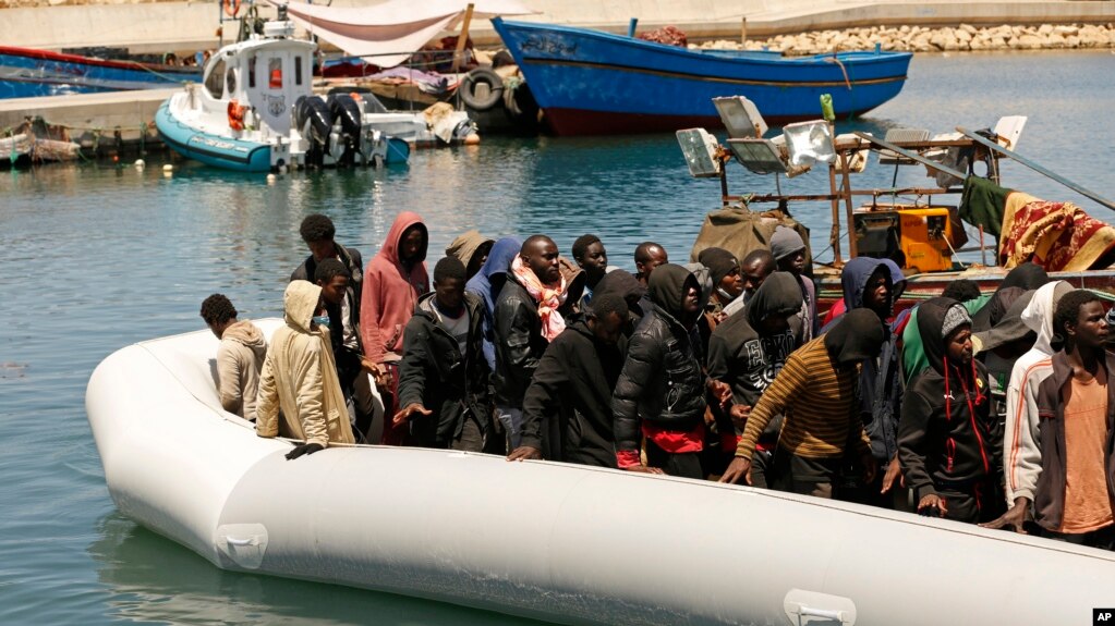 FILE - Migrants heading to Europe are brought back to port after being intercepted in the Mediterranean Sea by the Libyan coast guard, in Gasr Garabulli, northwestern Libya, May 23 2022. Source: VOA News.