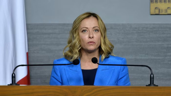 Giorgia Meloni’s plan to process asylum seekers in Albania was shot down by Italian courts just days after it started operations © Wael Hamzeh/EPA-EFE/Shutterstock. Source: Financial Times.