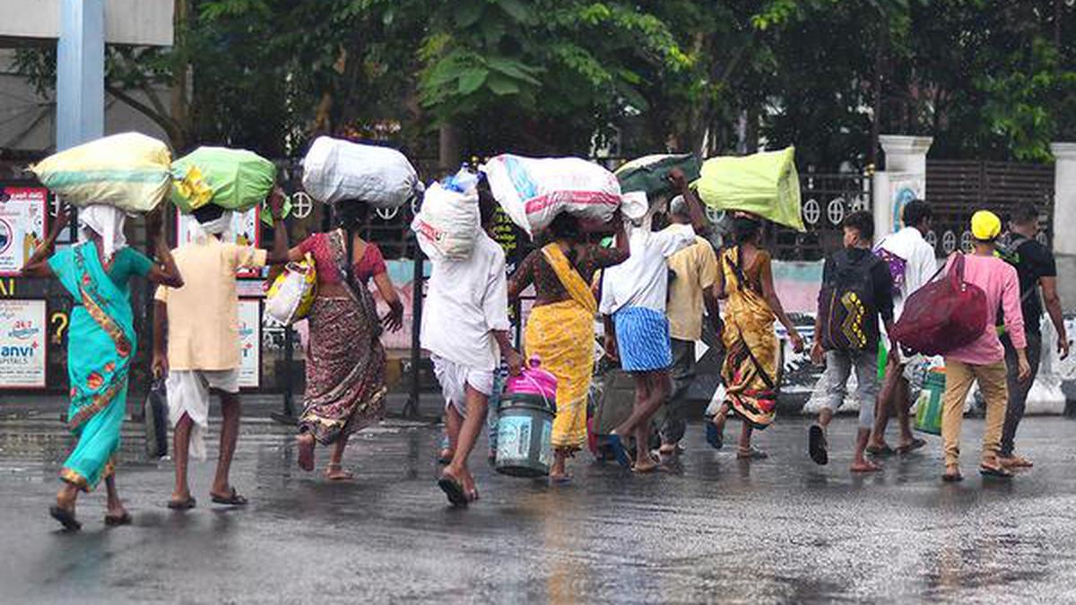 No safety net: Migrant labourers moving to worksites in Vijayawada, Andhra Pradesh. | Photo Credit: K.V.S. GIRI. Source: The Hindu.