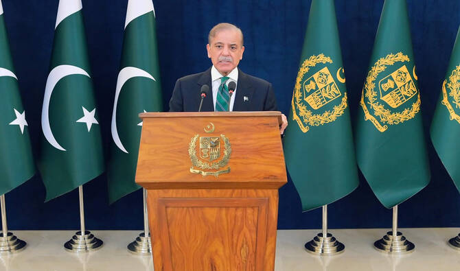 Pakistan's Prime Minister, Shehbaz Sharif is addressing the nation on May 10, 2025. (PM Office/File). Source: Arab News.