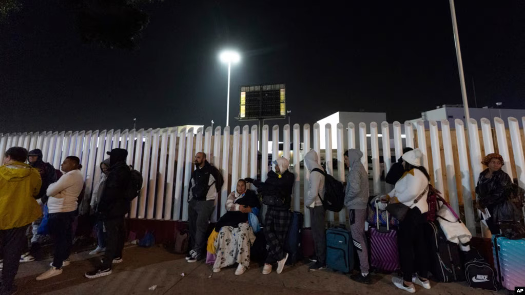 FILE - Migrants from Cuba and Venezuela line up at a Mexican immigration checkpoint as they make their way across the border for appointments to legally apply for asylum in the United States, Nov. 5, 2024, in Tijuana, Mexico. Source: Voice of Africa.
