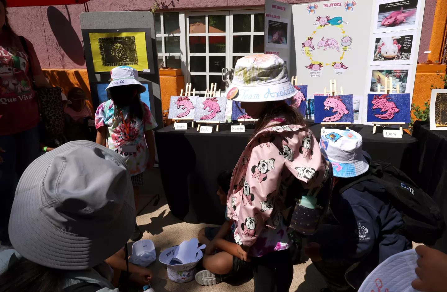At the zoo, children like RR not only study animals but also build confidence through public speaking. RR proudly explained how axolotls breathe through gills, change color to hide, and aren’t fish because they have legs. “I thought it was just like a normal fish,” she said, “but then I noticed the legs.” Wearing a dark ponytail and glasses, RR held a microphone and guided visitors like a young zookeeper—a big step for a child who had never even been to a swimming pool.