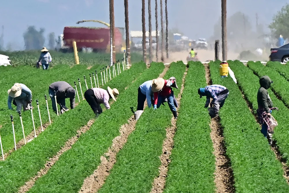 Farmworkers south of Bakersfield, in Kern County, California's breadbasket, on Wednesday.Frederic J. Brown / AFP - Getty Images. Source: NBC News.