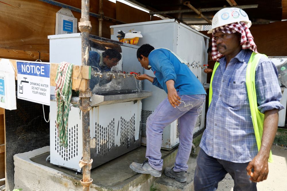 A worker drinks water at a construction site, in Dubai, UAE, August 15, 2023. (Photo: REUTERS/Rula Rouhana). Source: Climate Home News.