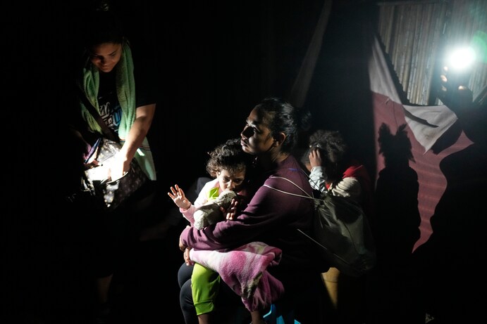 Venezuelan migrant Gabriela Villanueva holds her daughter as she waits to board a boat to Colombia on Panama’s Caribbean coastal island of Gardi Sugdub, Monday, Feb. 24, 2025, after turning back from southern Mexico where they gave up hopes of reaching the U.S. amid President Trump’s crackdown on migration. (AP Photo/Matias Delacroix). Source: The Washington Post.